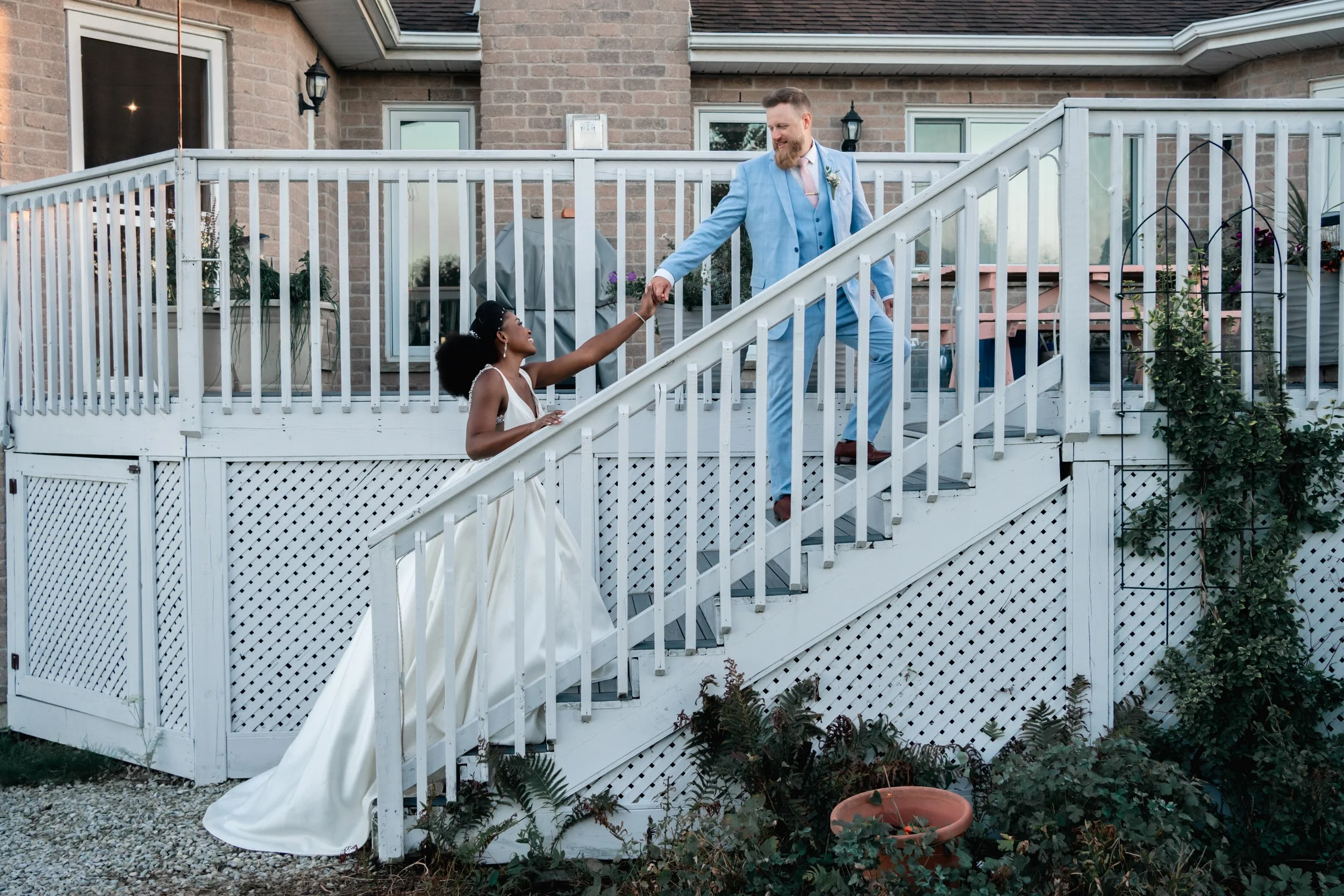 This beautiful rustic farmhouse wedding took place in Leamington, ON. It was a rainy morning on our drive to the bride’s house. As soon as we arrived, the sky cleared up and what followed was the best forecast and the most romantic sunset. Covid forced our couple to reschedule this wedding several times, but when the day finally arrived, it was absolutely magical. We especially enjoyed the ducks and chickens that were roaming around as we captured this day. Ogor and Rob reached out to us early on in the planning process to help them with their wedding timeline so we specifically set aside the best times to capture photos during their wedding and fit in a sparkler exit. Below is a small sample from their wedding.
